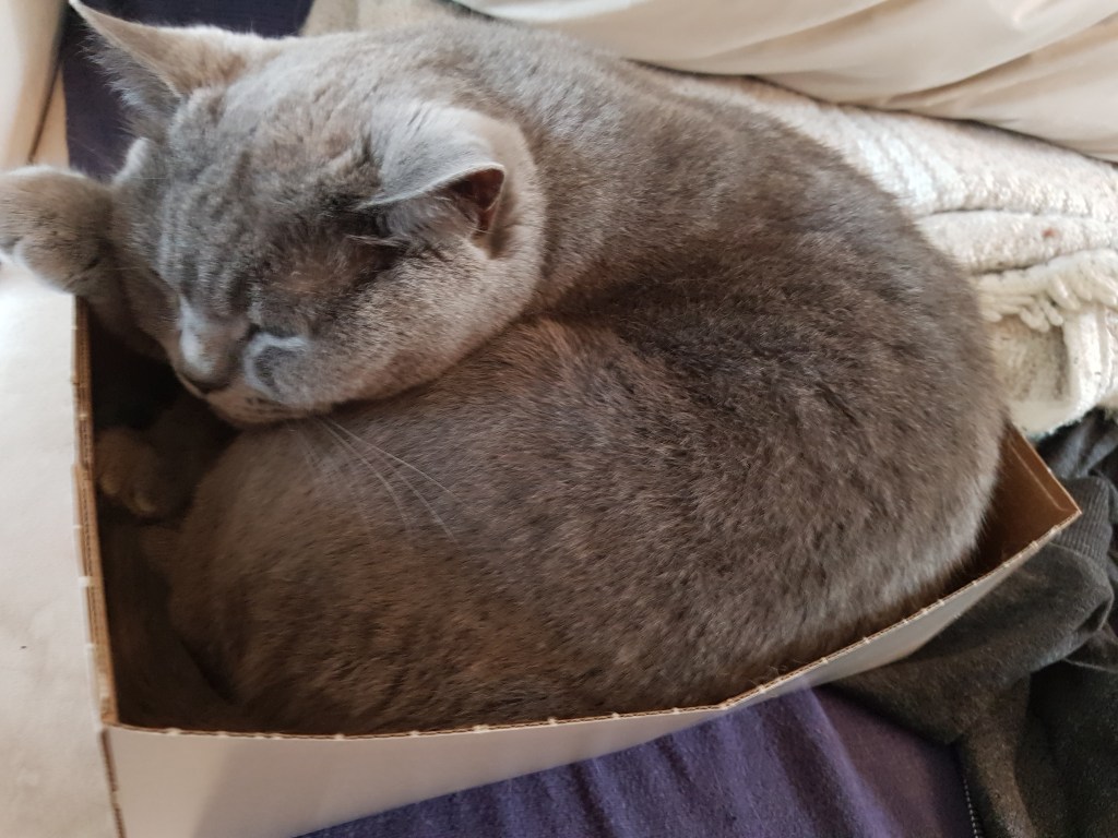 Amy wurde am 26.04.2014 geboren und war die erste BKH im Haushalt. Mit ihr zog die Liebe zu den Vorzügen dieser Rasse ein. Die mittelgroße, ca 4kg schwere Grautatze ist charakterlich typisch für BKH: Sanftmütig, perfekt an den menschlichen Rhythmus angepasst, und zeigt von sich aus ihre Zuneigung auf ganz eigene wundervolle Art (sie stupst uns mit der Nase an oder mit der Pfote ins Gesicht, wenn sie kuscheln und gestreichelt werden möchte und macht ein entzückendes Maunz-Geräusch). Amy ist zudem sehr intelligent, sie lernt schnell und weiß genau was sie darf und was nicht. Sie wägt ihre Erfolgschancen genau ab bevor sie ein “ Attentat“ startet. Auch ihr Gerechtigkeitssinn ist ausgeprägt. Streiten sich die anderen Mal, schreitet Amy ein und „vermittelt“. Sie durfte in der vorherigen Zucht (welche Eric mit seiner ehemaligen Partnerin hatte) 3 Würfe austragen über insgesamt 2,5 Jahre: Den A-Wurf aus dem Mini-Plüsch kommt und den B-Wurf aus dem Dale hervorging, sowie den D Wurf der Zucht von Shnurgarst. Hierbei stellte sie sich als Naturtalent und ausgesprochen intuitive, fürsorgliche Mutter heraus. Amy hat sich nach dem ersten Wurf charakterlich etwas verändert, sie wirkte von nun an wie eine weise, vornehme Mutter die über alles mit ihren liebevollen Augen wacht. Holt man jedoch den Weidenstock im Garten oder die Katzenangel heraus, spielt sie wie ein 3 Monate altes Kitten 😀