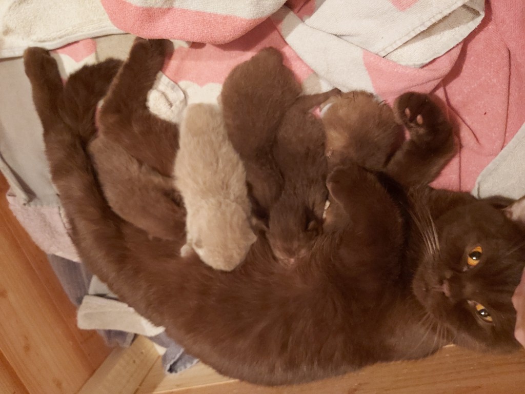 Es ist soweit: Candy hat ganz Problemlos ihre Kitten geboren, sie hat kaum Hilfe/ Aufsicht benötigt.