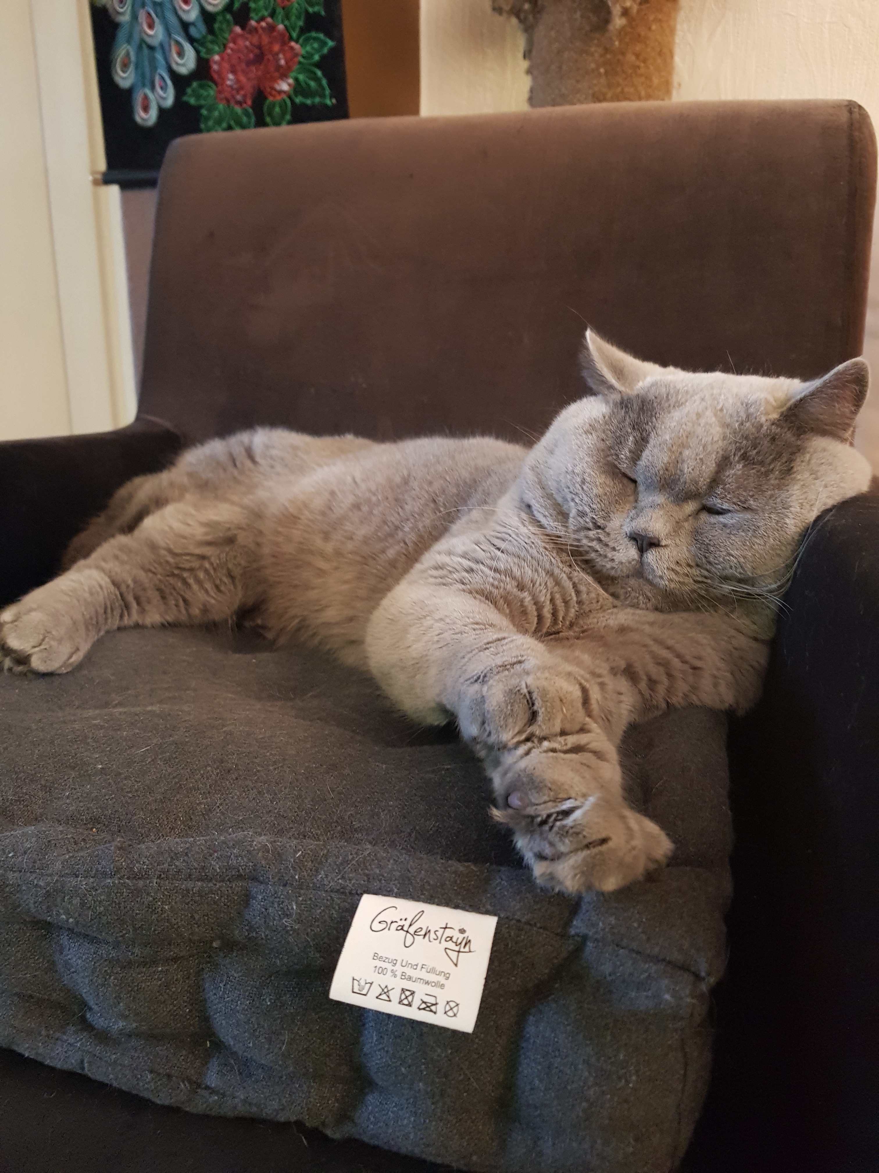 Schließlich nannten wir den groß gewachsenen Kater zu Hause nicht mehr bei seinem Zuchtnamen. Zunächst dominierte da als Kosename „Fettie“ oder „Fettingdale“, woraus dann schließlich Dale entstand. Anders nennen wir ihn mittlerweile gar nicht mehr. Unser schmusiger, großer Dale <3.