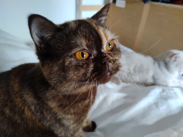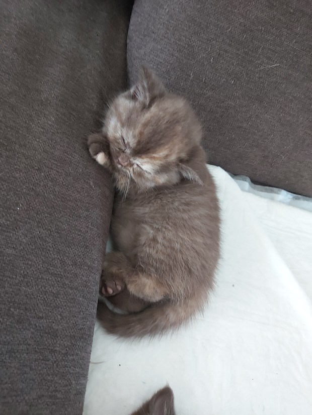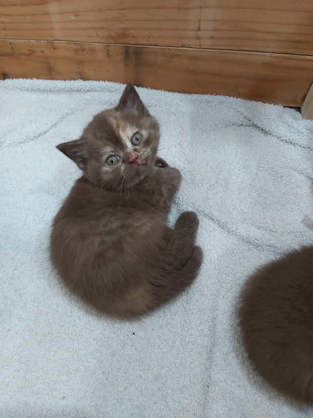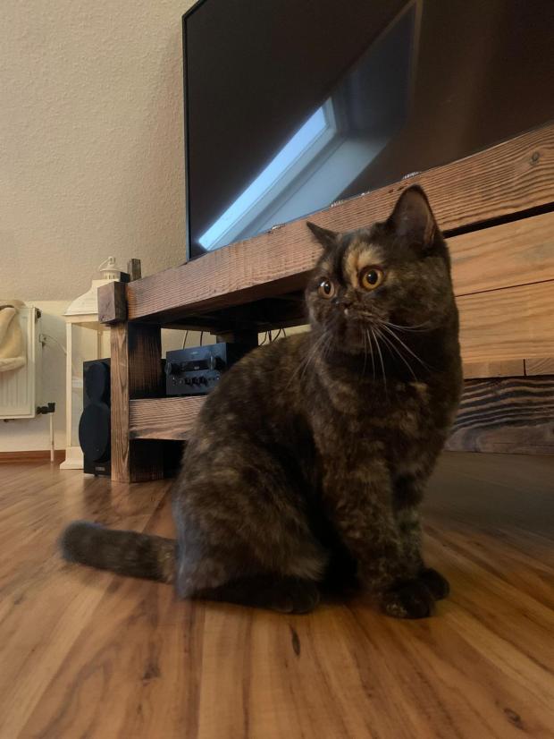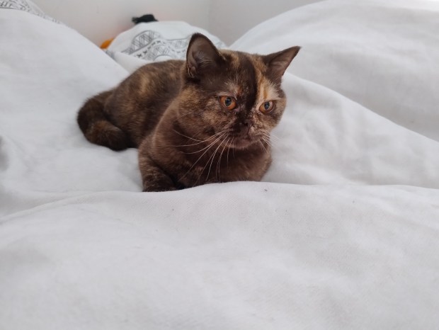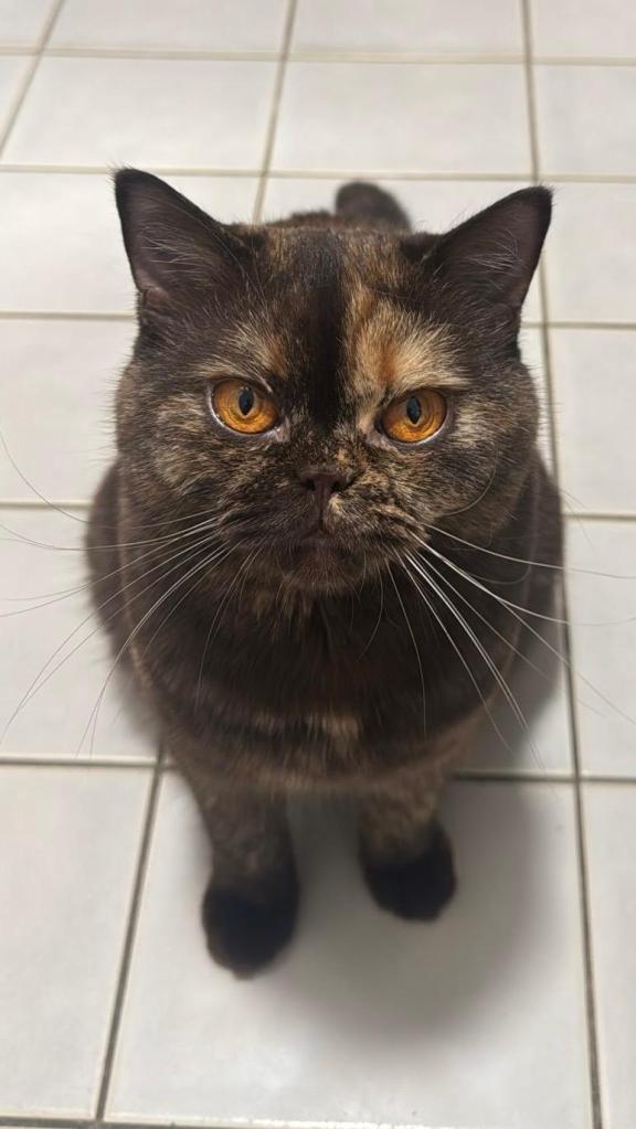 Unsere Chocolate-Tortie-Dame Dana wurde am 15.02.2023 als Tochter von Candy geboren. Sie hat ein ruhiges und verschmustes Wesen, typisch BKH 🙂 Dana, von uns auch Dani-Sahne (auch wegen ihrer Fellfärbung) oder Danussi-Kussi (Sie stupst gerne ihre Nase an unsere Nase, wie ein Kuss) genannt, hat eine ganz besondere Stimme. Sie klingt beim Miauen immer etwas blubbernd, was ihr Katzentypisches Betteln nach Futter umso niedlicher macht. Wir planen diese charakterlich wie Farblich besondere Britin im Laufe des Jahres 2024 mit unserem Cosmo zu verpaaren.