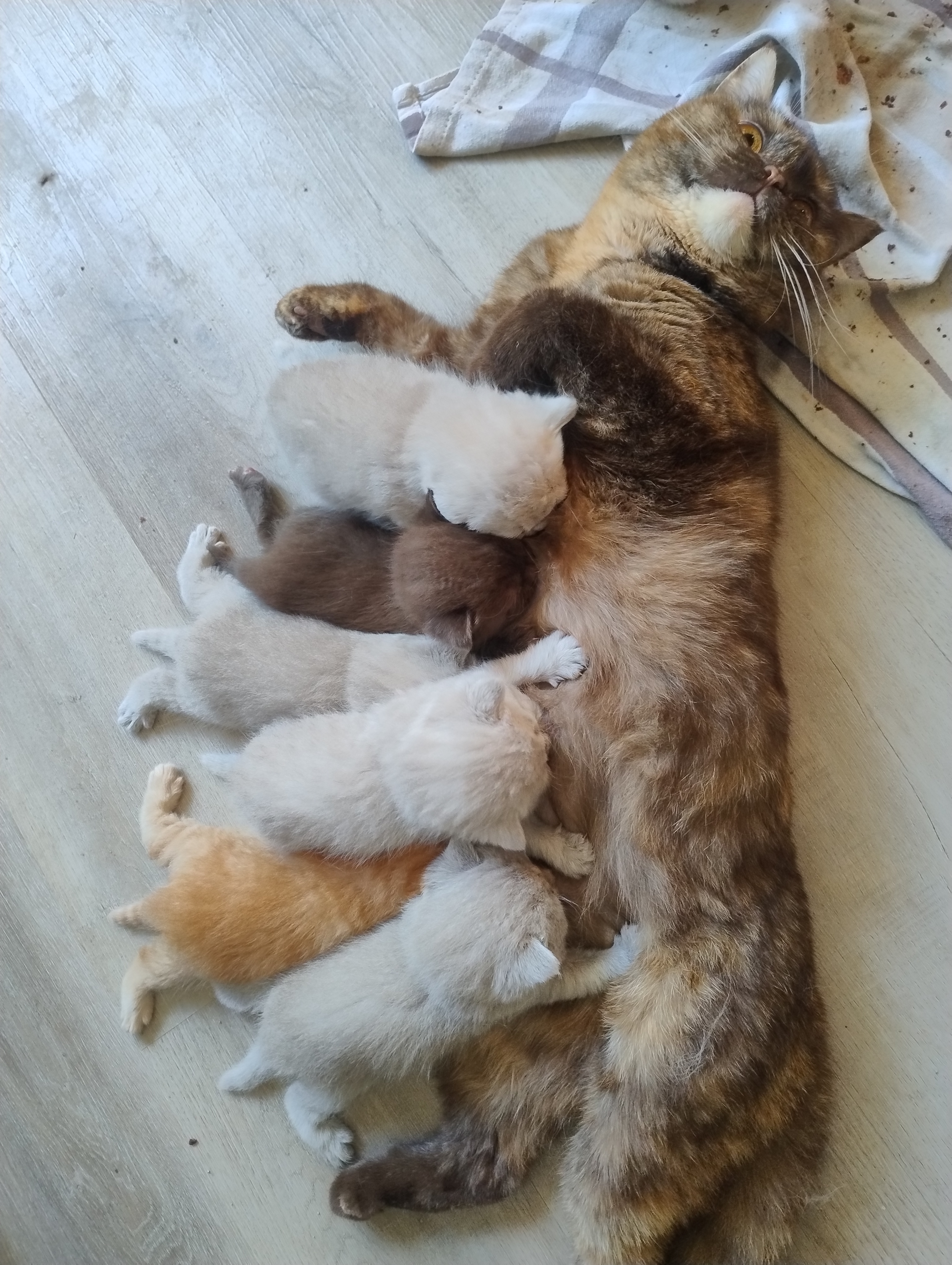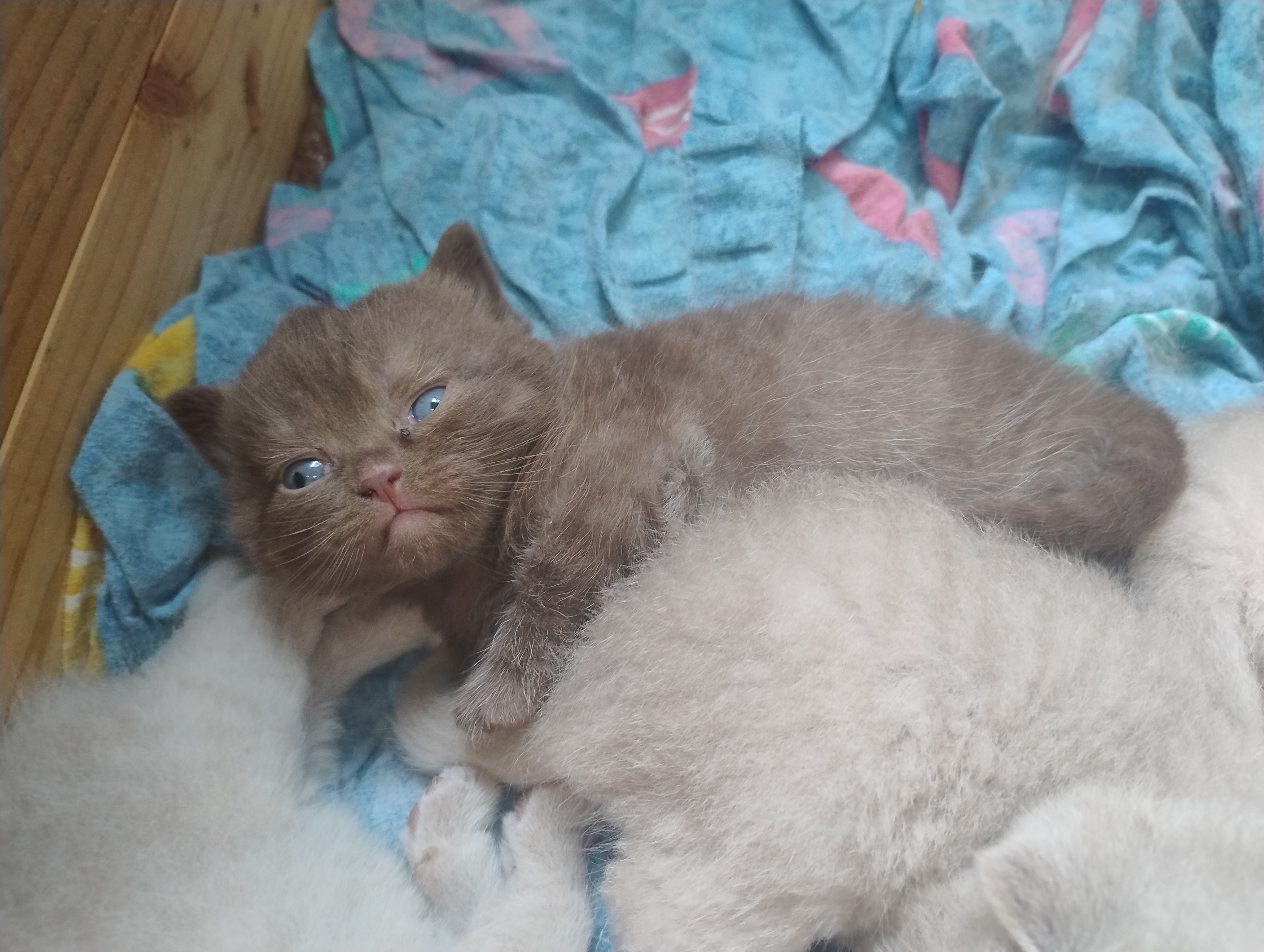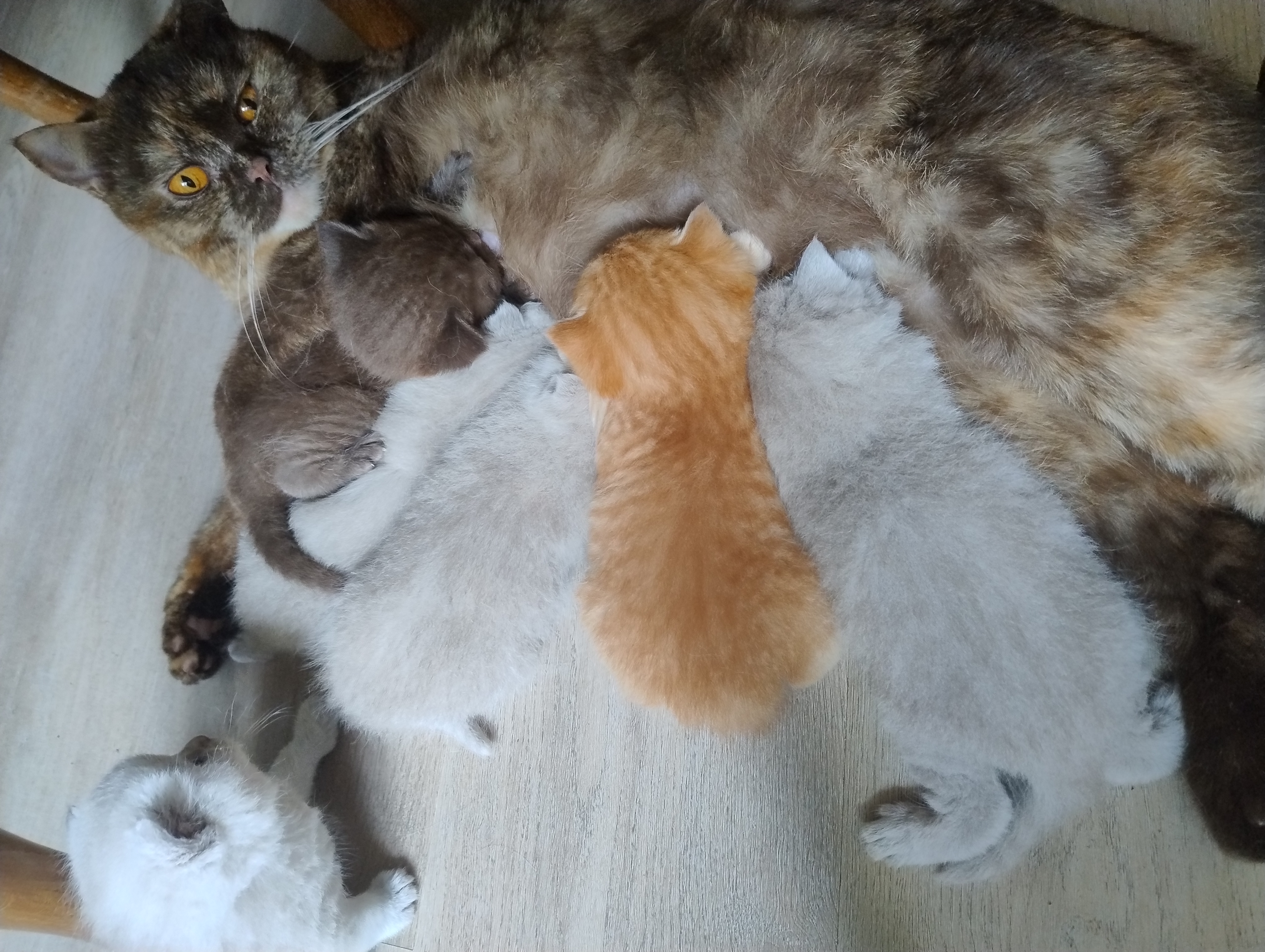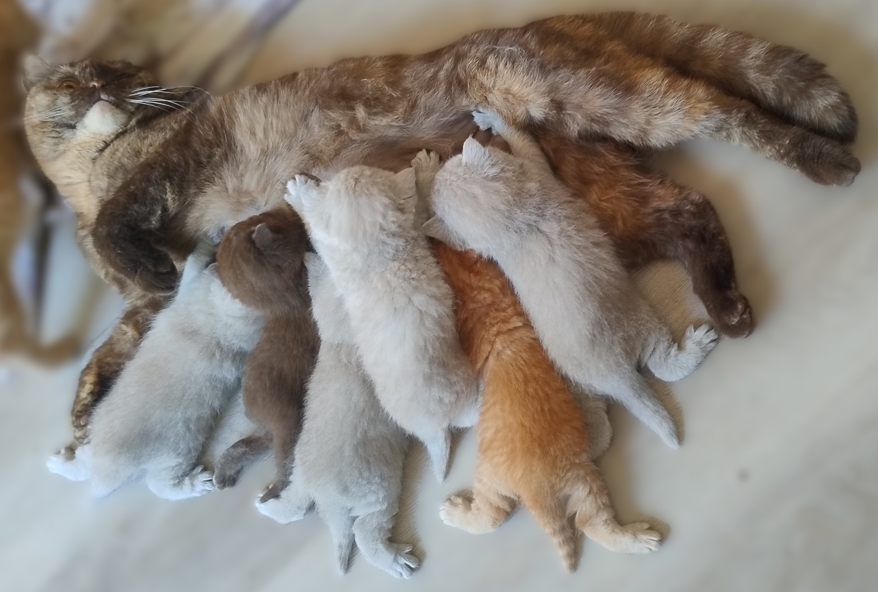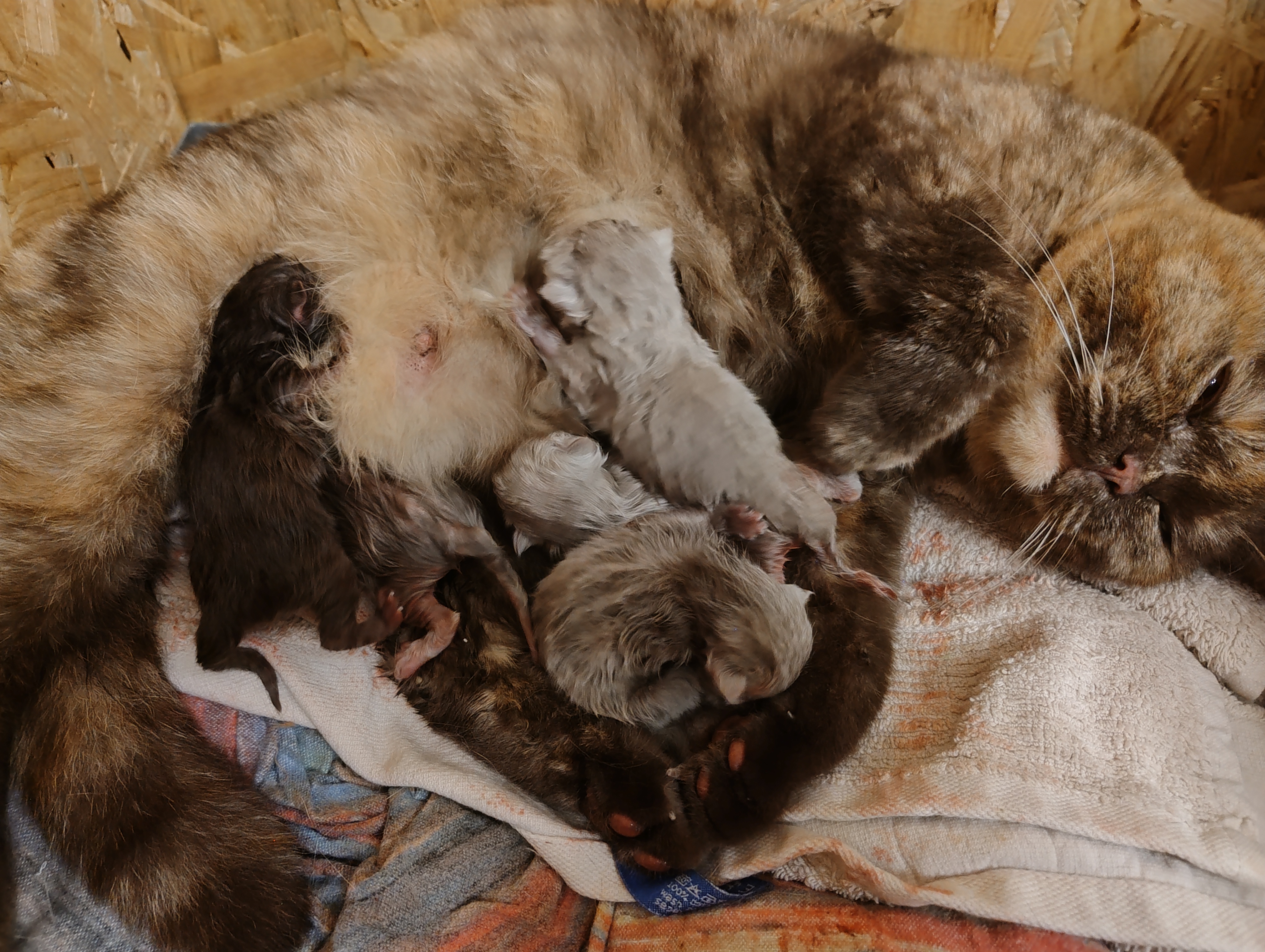 Die kleinen BKHs nehmen gut an Gewicht zu, und es einige Äuglein sind bereits offen, die anderen dabei sich zu öffnen. Mama Dörte geht es auch gut, sie kümmert sich Klasse um ihre Jünglinge.