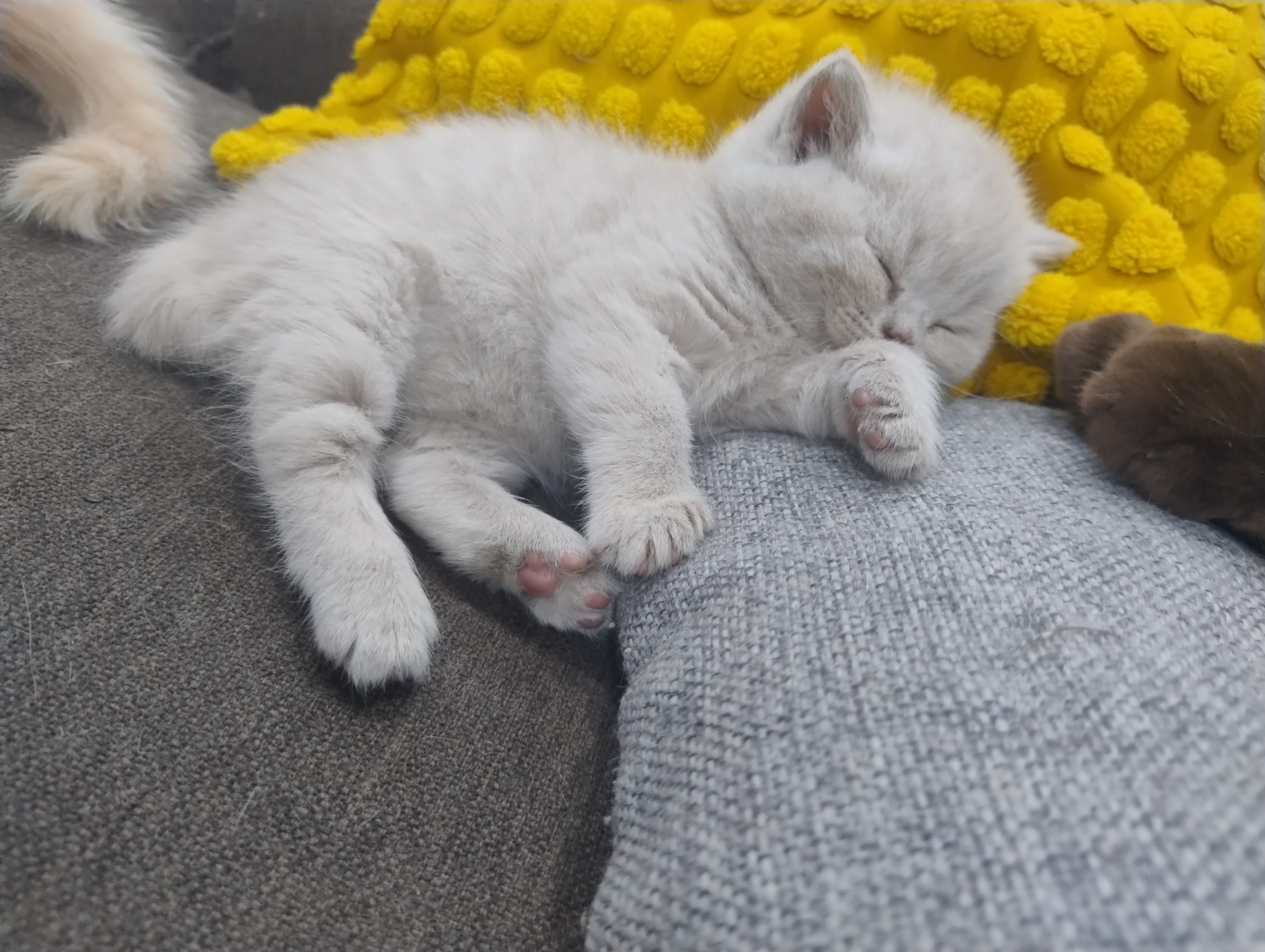 Die großen BKH-Geschwister des F-Wurfes spielen jeden Tag bis sie alle erschöpft in den Schlaf fallen mit den kleinen G-Wurf Kitten, als wären sie ein großer Wurf. Es ist so goldig mit an zu sehen, wie nun wirklich keine Unterschiede mehr g4emacht werden, da selbst die Kleinen schon sicher auf den Pfoten sind und ihre Geschwister spielerisch angreifen.