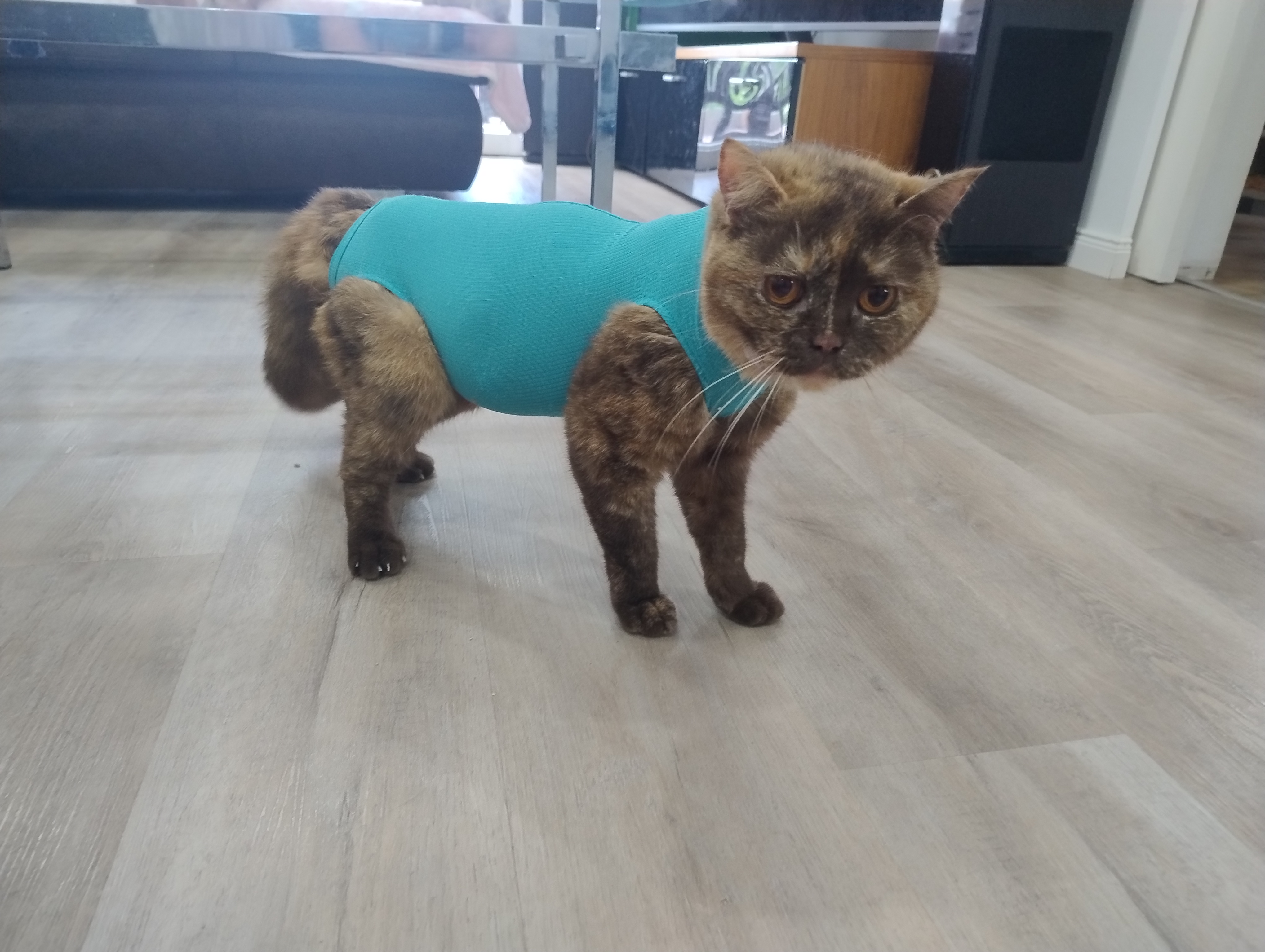 Unseren Youngster-BKHs geht es bisher glücklicherweise allen sehr gut, und wir erwarten gespannt den Dienstag ab, zum ersten Tierarztbesuch. Leider hat Mama Dörte beim Spielen wohl ein Zähnchen etwas tief ins Fleisch bekommen. Die Wunde hat sich entzündet, weshalb sie nun Antibiotika bekommt und einen Body trägt, damit sie die Kitten nicht mehr säugen kann (laut Tierärztin ist das Antibiotikum nicht getestet für Kitten, weshalb sie lieber nicht säugen sollte). Diesen Job übernimmt zum Glück Schwester Dana, damit es den G-Wurf BKHs an nichts fehlt. Ein Bild von unserer nicht ganz so fröhlich aussehenden Dörte im Body findet ihr in der Gallerie; ich bin immer wieder erstaunt wie klein und zart Katzen aussehen, wenn sie im Body stecken. Wir hoffen dass die Entzündung schnell zurück geht und Dörte zeitnah wieder frei und Bodylos herumturnen kann ❤